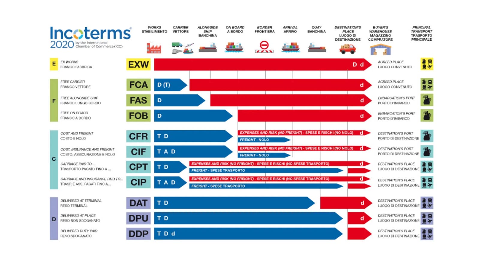 The IncotermsĀ® 2020 rules are the latest revision of the international trade terms published by the International Chamber of Commerce (ICC). They are internationally recognised as The most authoritative and effective way to allocate transport costs and risks between the seller and the buyer in an international sale of goods.